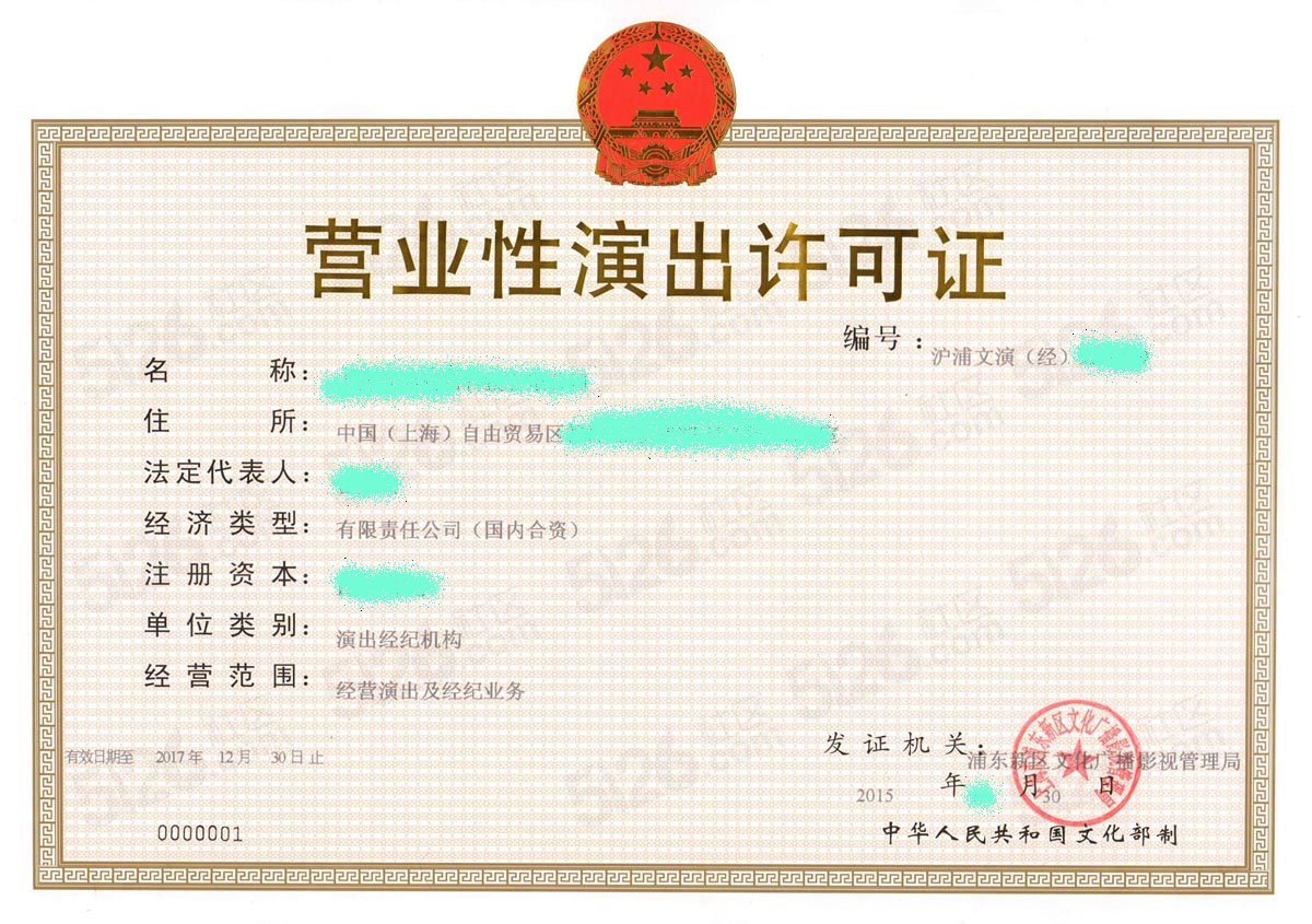 营业性演出经纪许可证